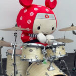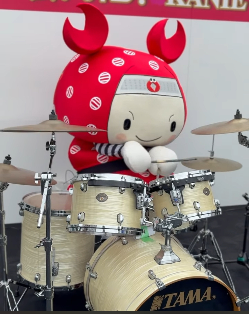 バタバタしながらステージへ。何と!ここで突然、蟹江町のゆるキャラの一人『カニンジャ「ちょき丸」』君が登場、バンマスのドラムに座り「ドラムソロ」でステージ準備の空白を埋めてくれました。幸い雨もなく「ヒーローになる時それは今」・「今はもう誰も」・「あんたのバラード」と続きおなじみのメンバー紹介まで進みました。しかし「朝まで踊ろう」が始まるころにはミスト状態の雨が、ラストの「たどり着いたらいつも雨降り」途中からは曲名の通りパラパラとした雨降り状態となりましたが懸念した感電事故もなく無事演奏を終えました。